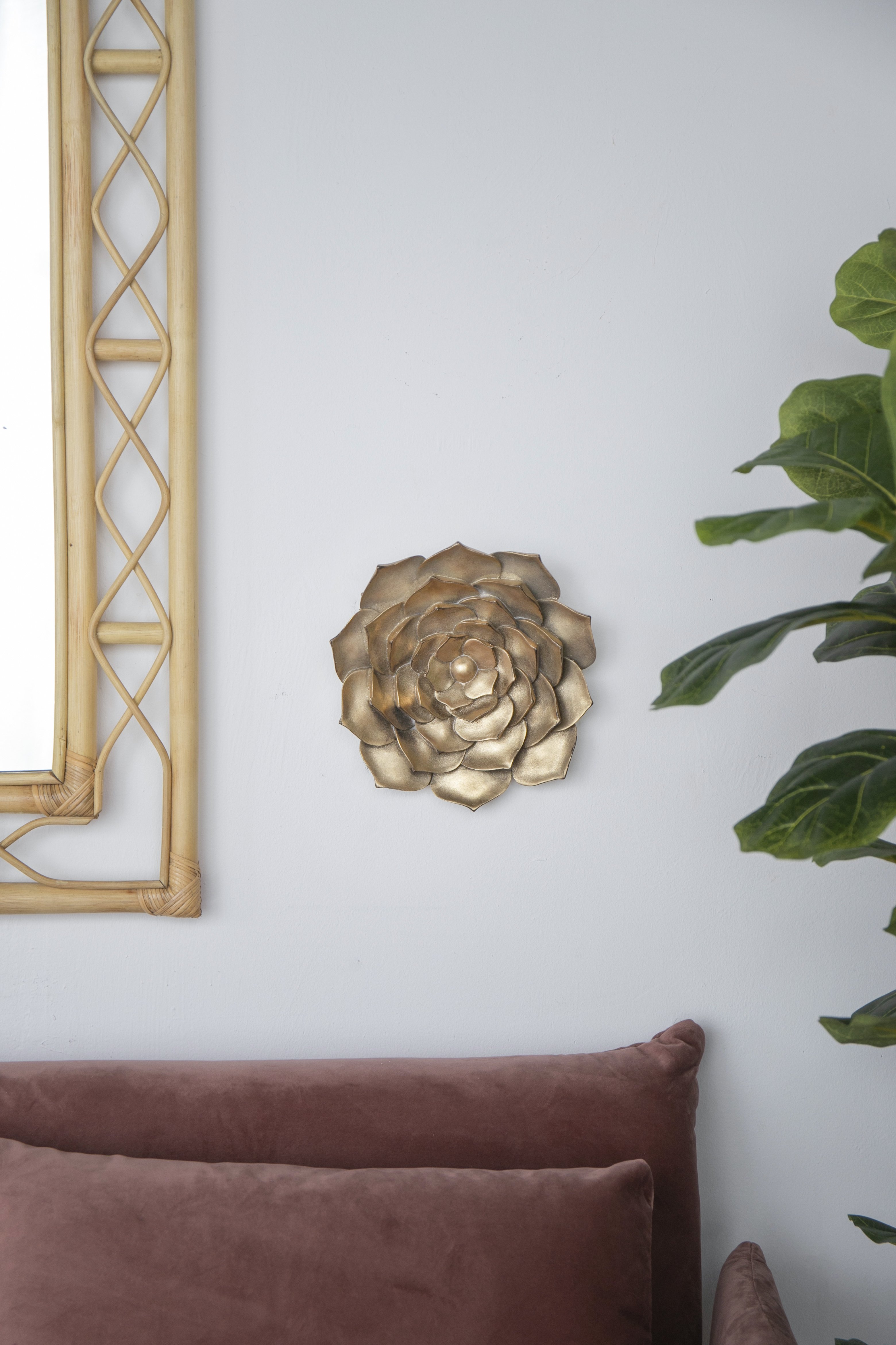 With its rich, gleaming finish and radiant design, this Succulent Wall Plaque captures natural beauty with glamorous style. Liven up a spacious gallery wall or create a warm welcome in a chic entryway with this gold accent piece. Perfect for home or office, pair this charming succulent with other pieces in the collection to create a dynamic, cohesive look that complements any style.
