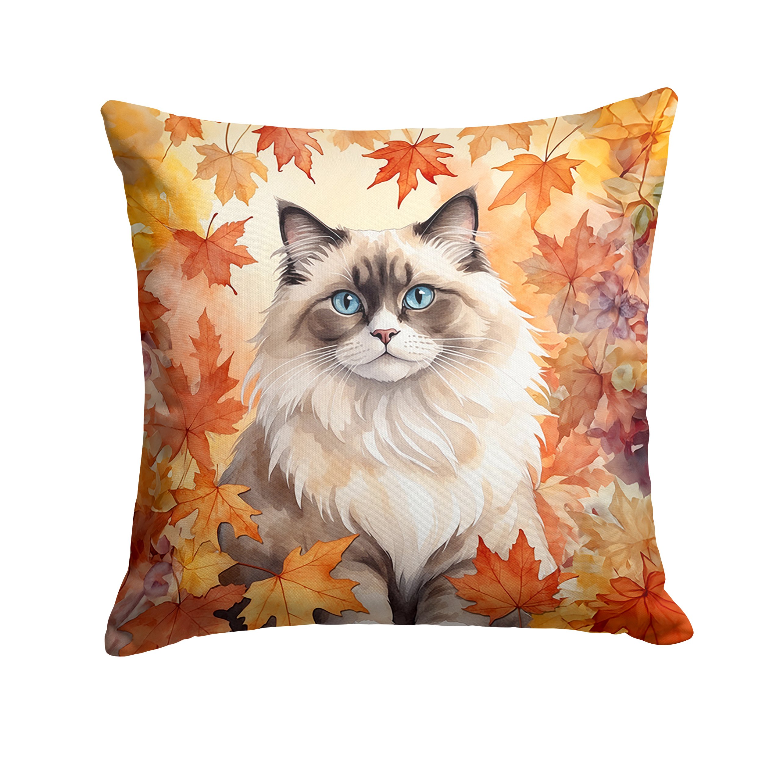Ragdoll Cat in Fall Leaves Throw Pillow Machine Washable, Indoor Outdoor Decorative Pillow for Couch, Bed or Patio, 18Hx18W